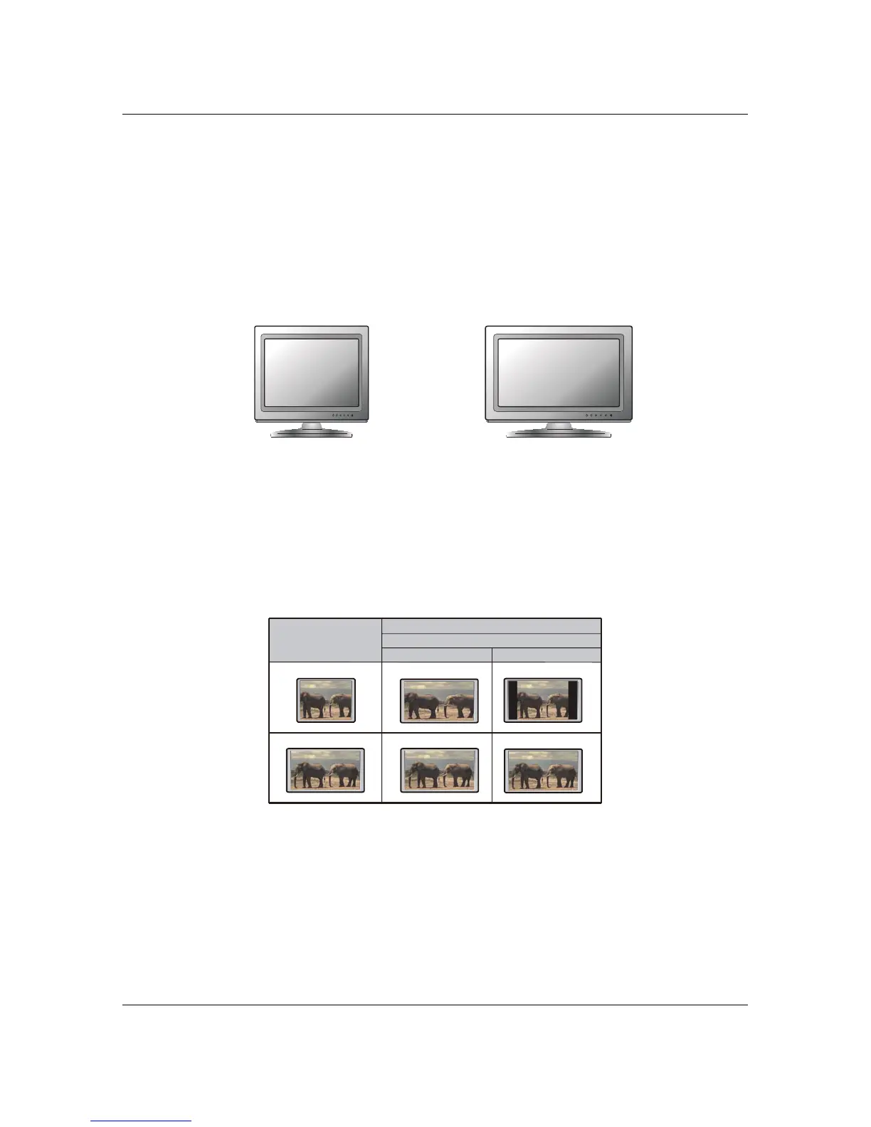 format recorded on the discs, image appearance on the TV screen can be one of the following: