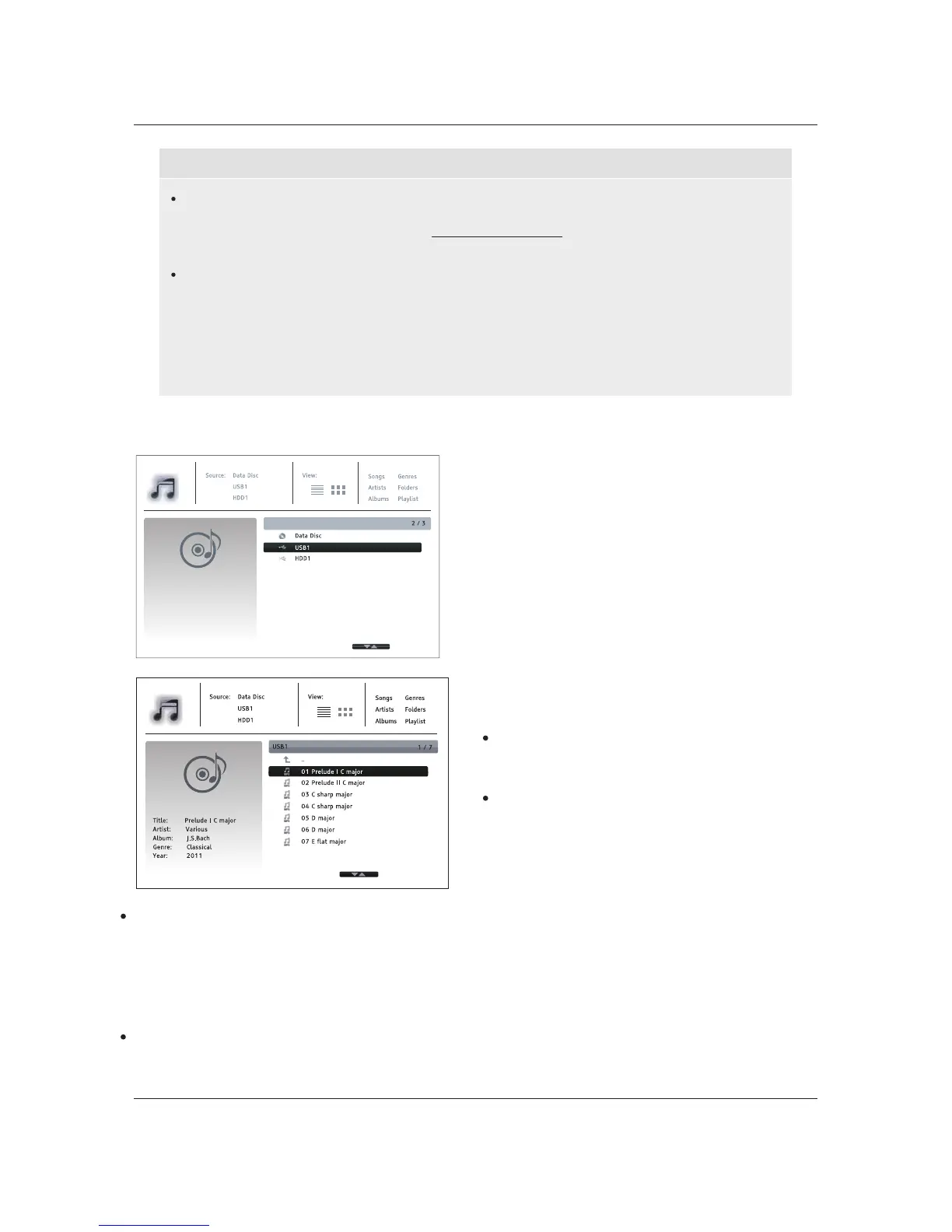 disc or USB drive, select Music from the Home