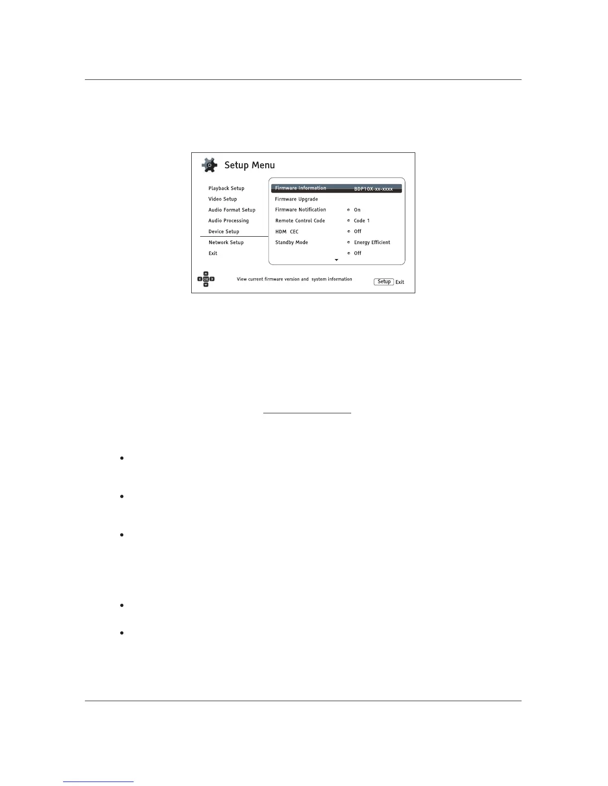 The Device Setup section of the Setup Menu system allows you to configure additional player options related