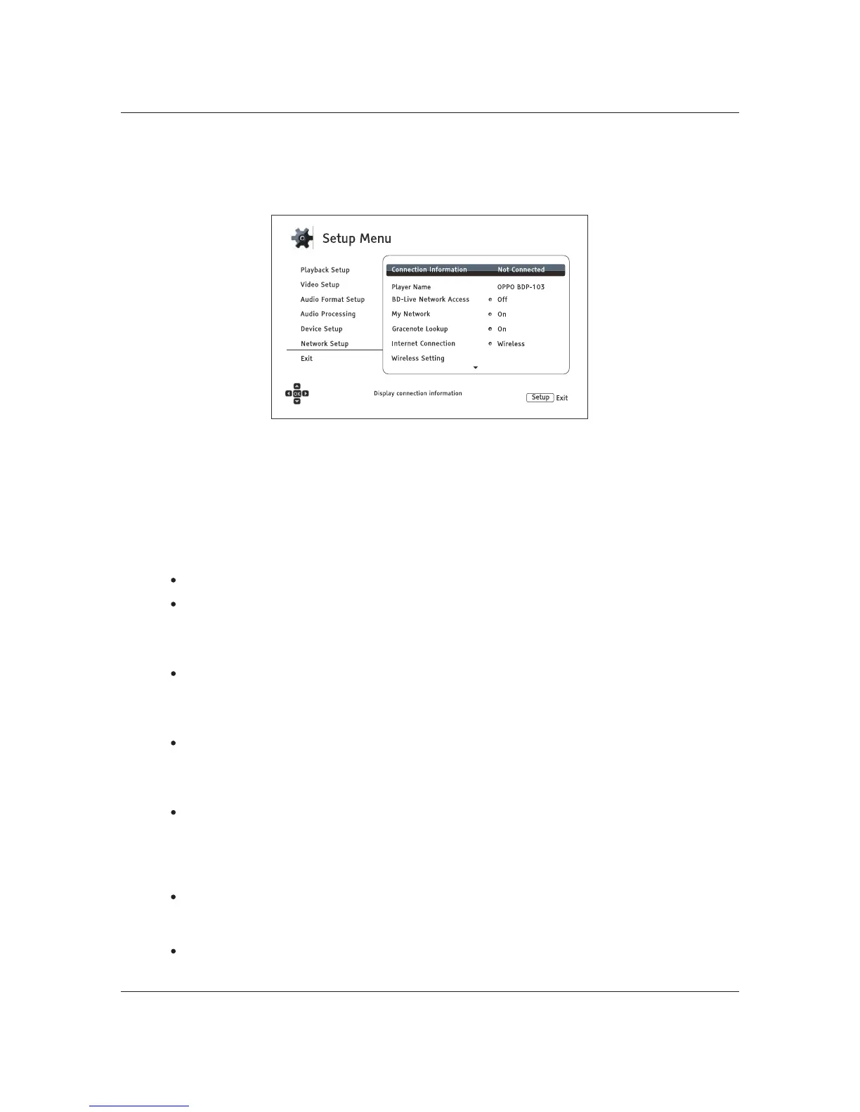 The Network Setup section of the Setup Menu system allows you to configure the player’s network