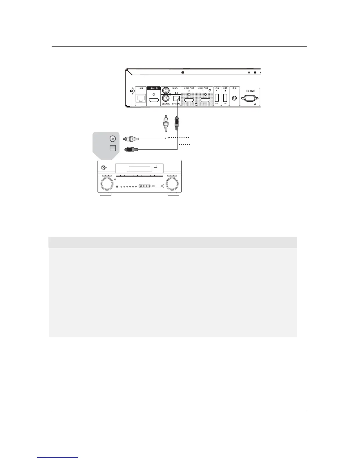 optical digital audio cable to connect one of the digital audio outputs to the corresponding input