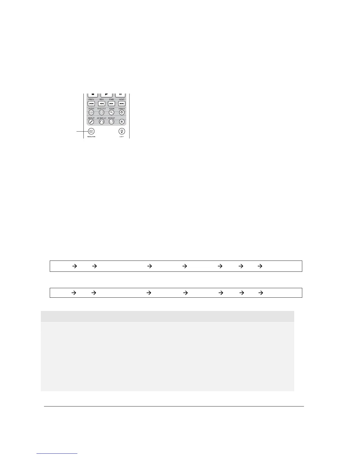 pressing the RESOLUTION button on the remote.