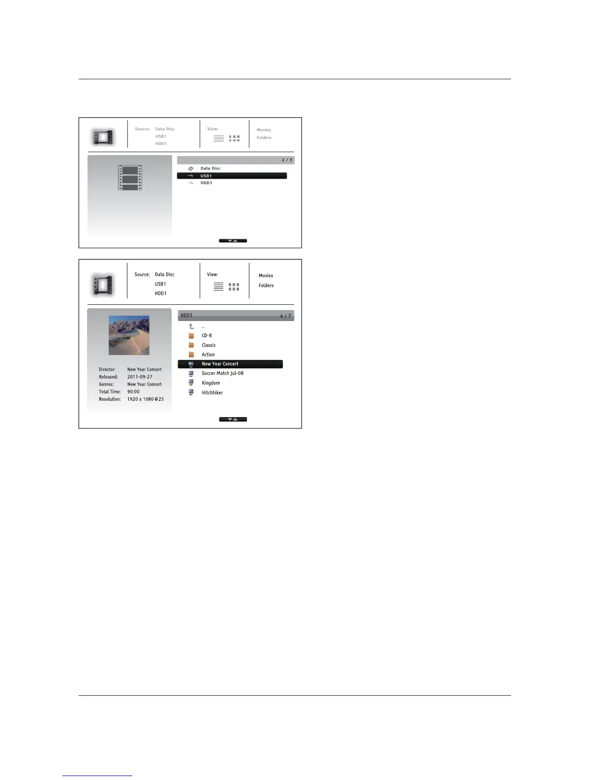 x When a movie file is highlighted by the cursor, press the ENTER or PLAY buttons to start