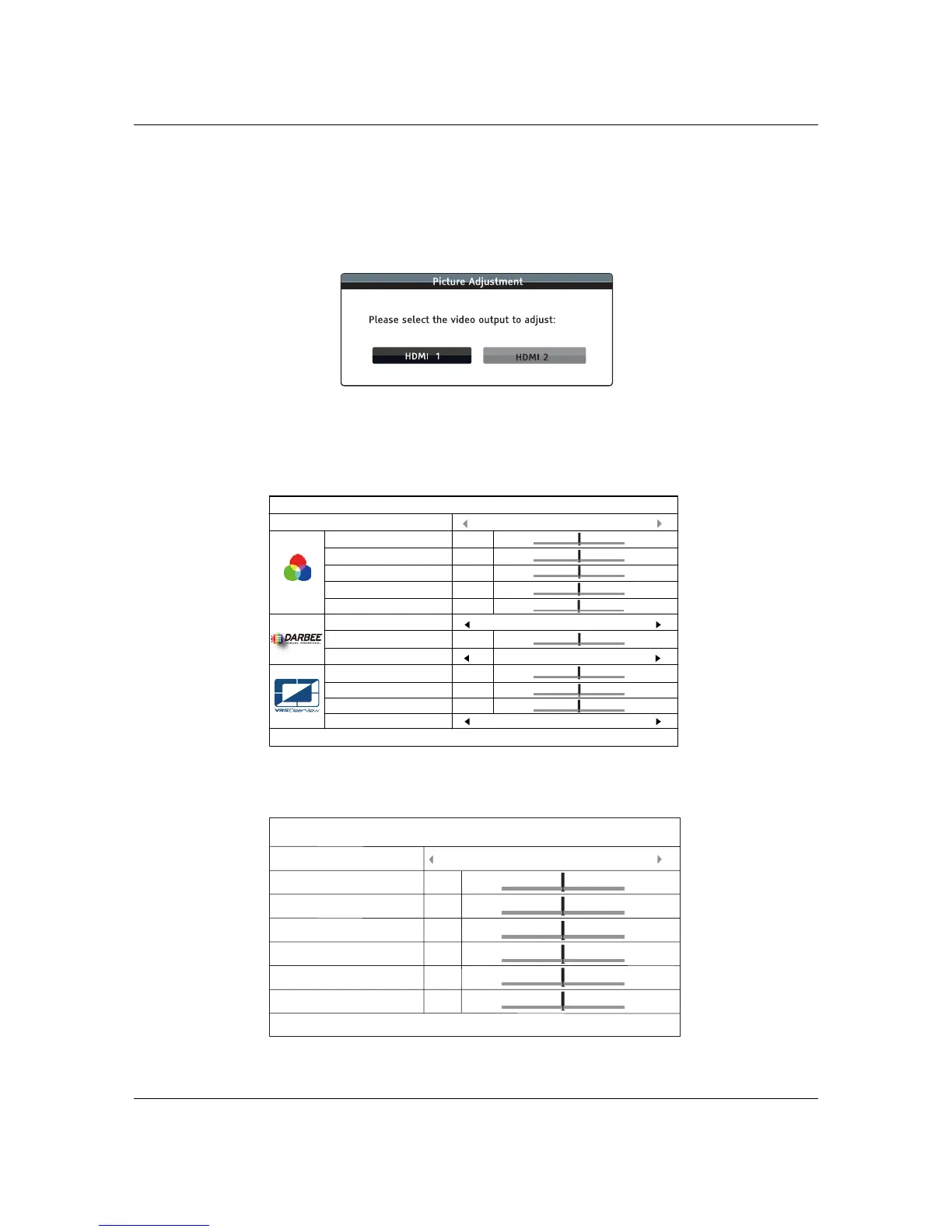 Adjustment menu. Depending on the selected video output, the Picture Adjustment menu may be slightly