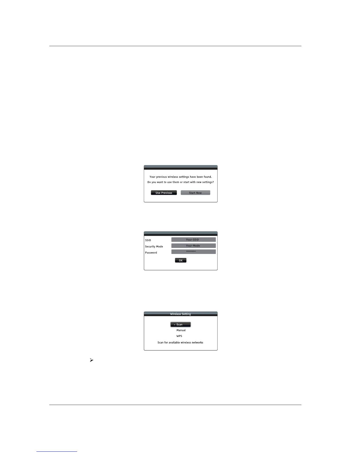 The player first searches for the last successful wireless settings. If they exist, a message