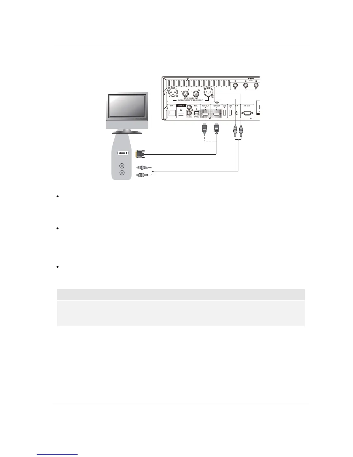 terminals of the player to the TV. Make sure the audio cables are connected to the same input