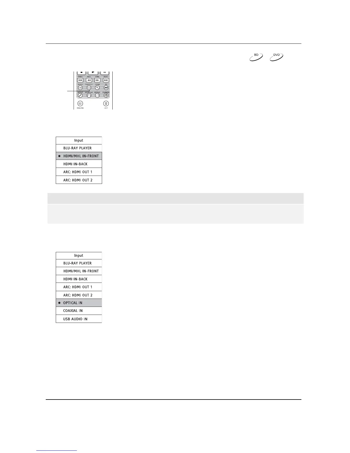through the OPTICAL, COAXIAL and USB DAC ports, press