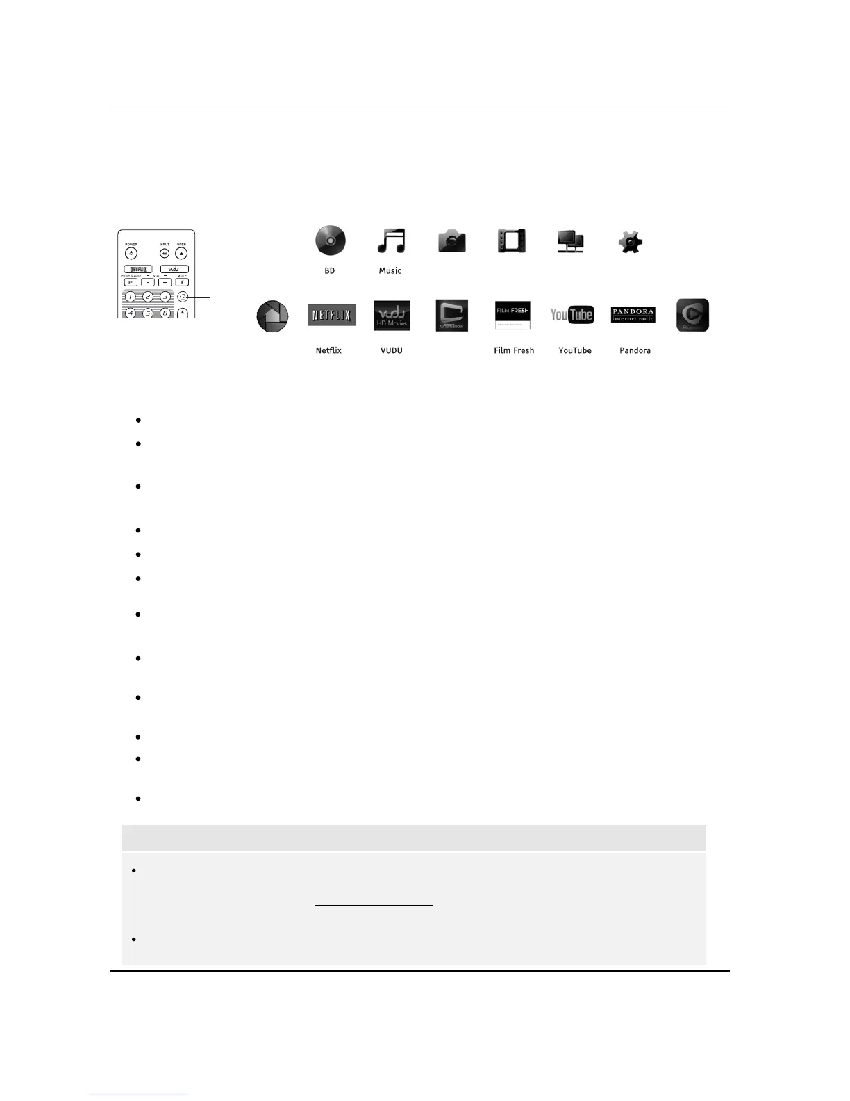 The BDP-105 presents a Home Menu to assist you in navigating and playing media files from an inserted