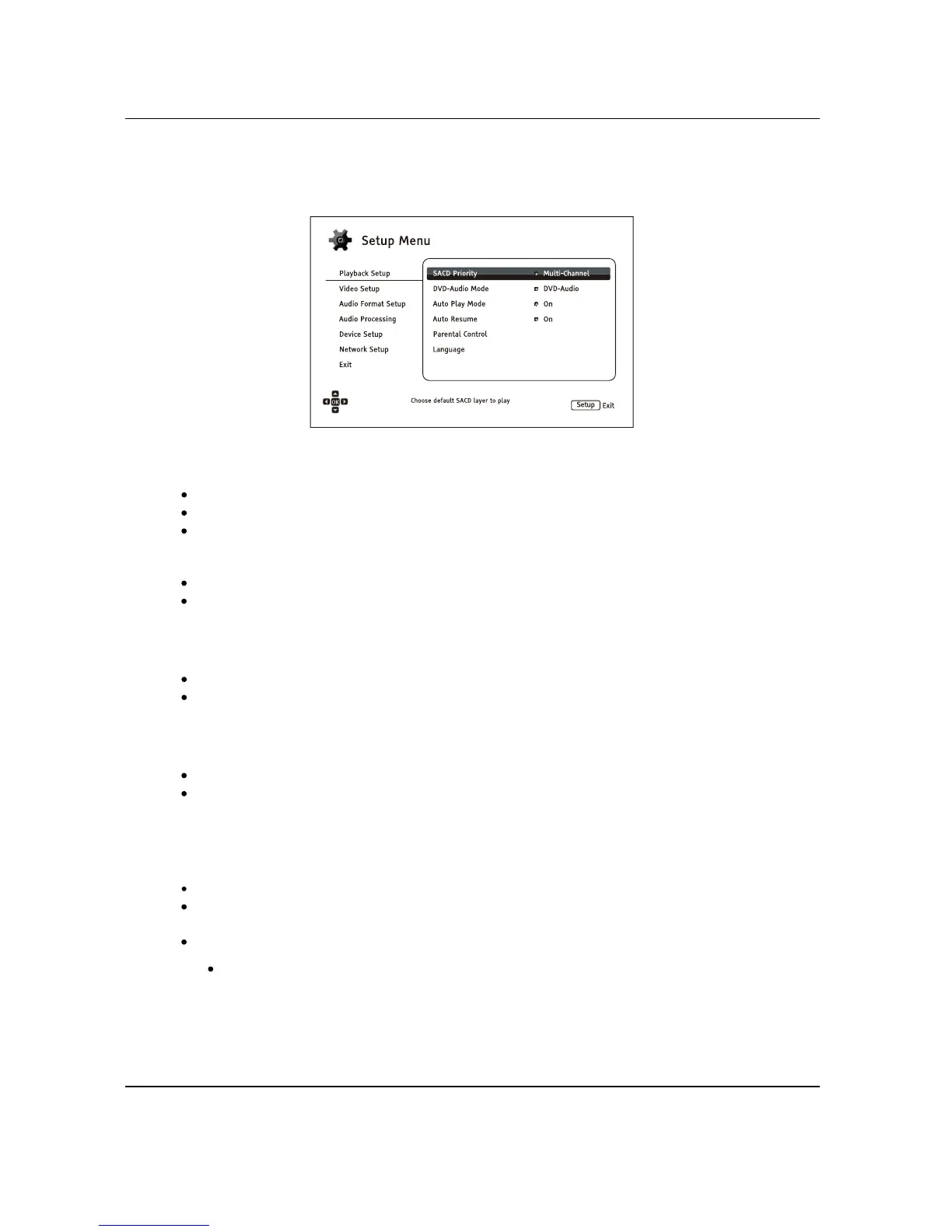 1. SACD Priority: Select which audio layer to play for SACD (Super Audio CD).