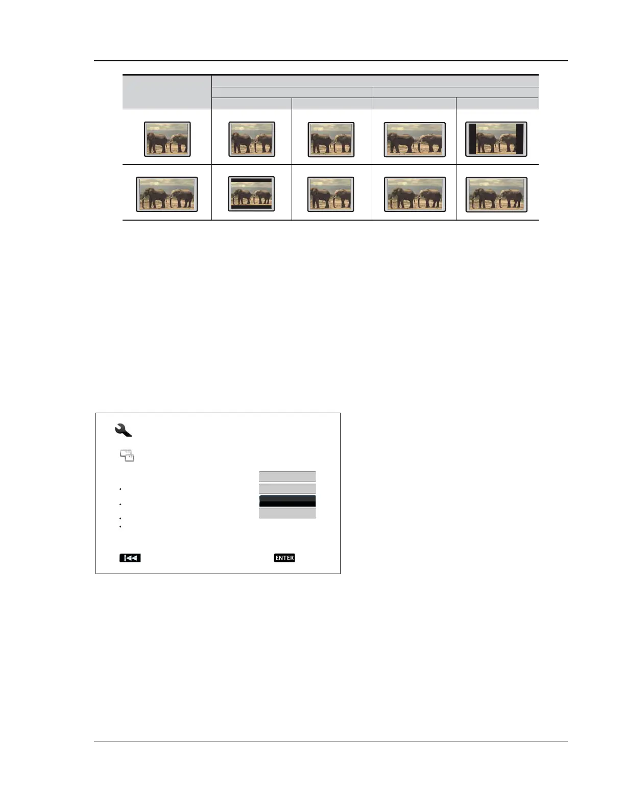 • 4:3 Letterbox – 4:3 TV Letterbox. Choose when the display is 4:3. Widescreen image is