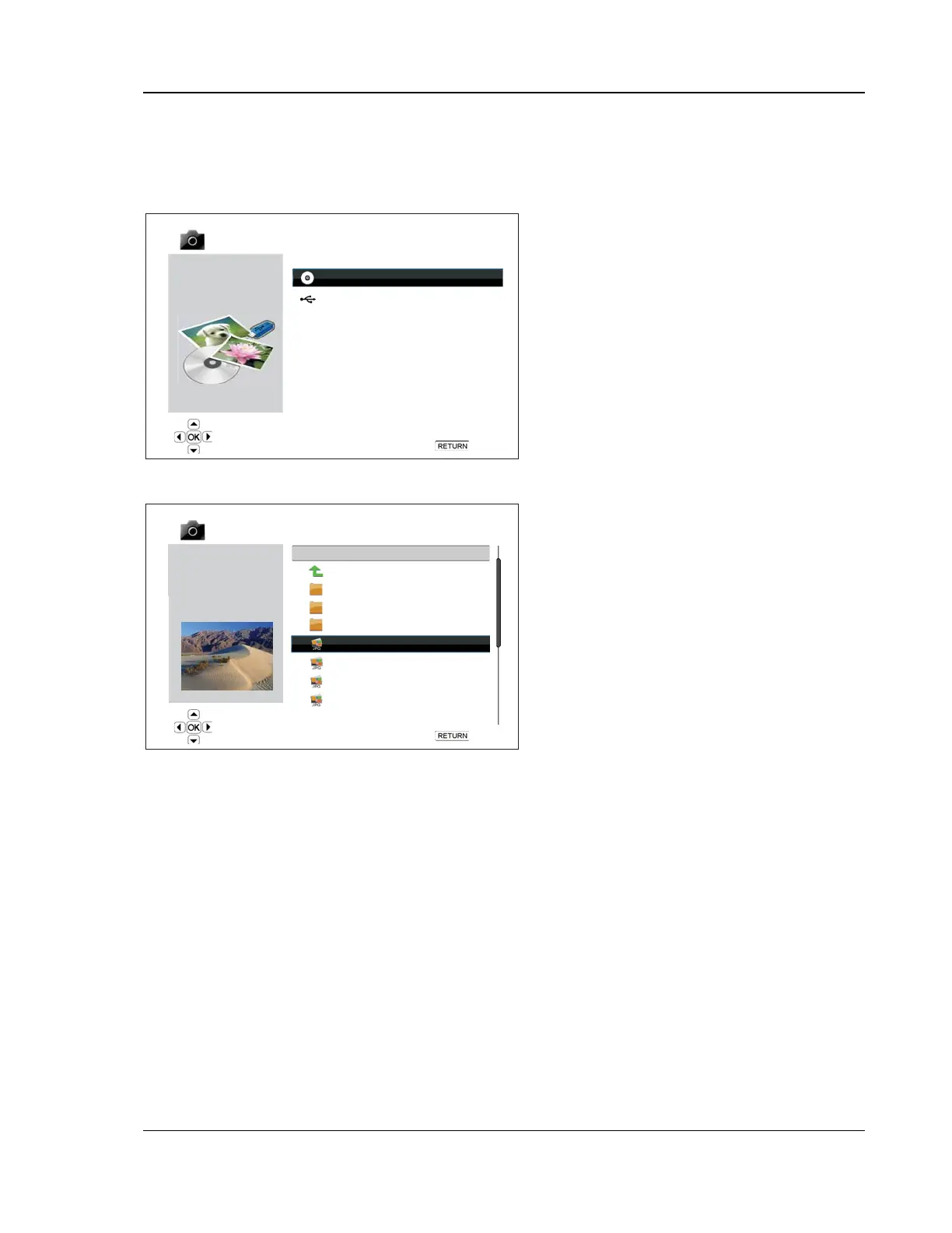 files. The music files can be stored on the same disk as the photos, or on a different USB drive. Start music