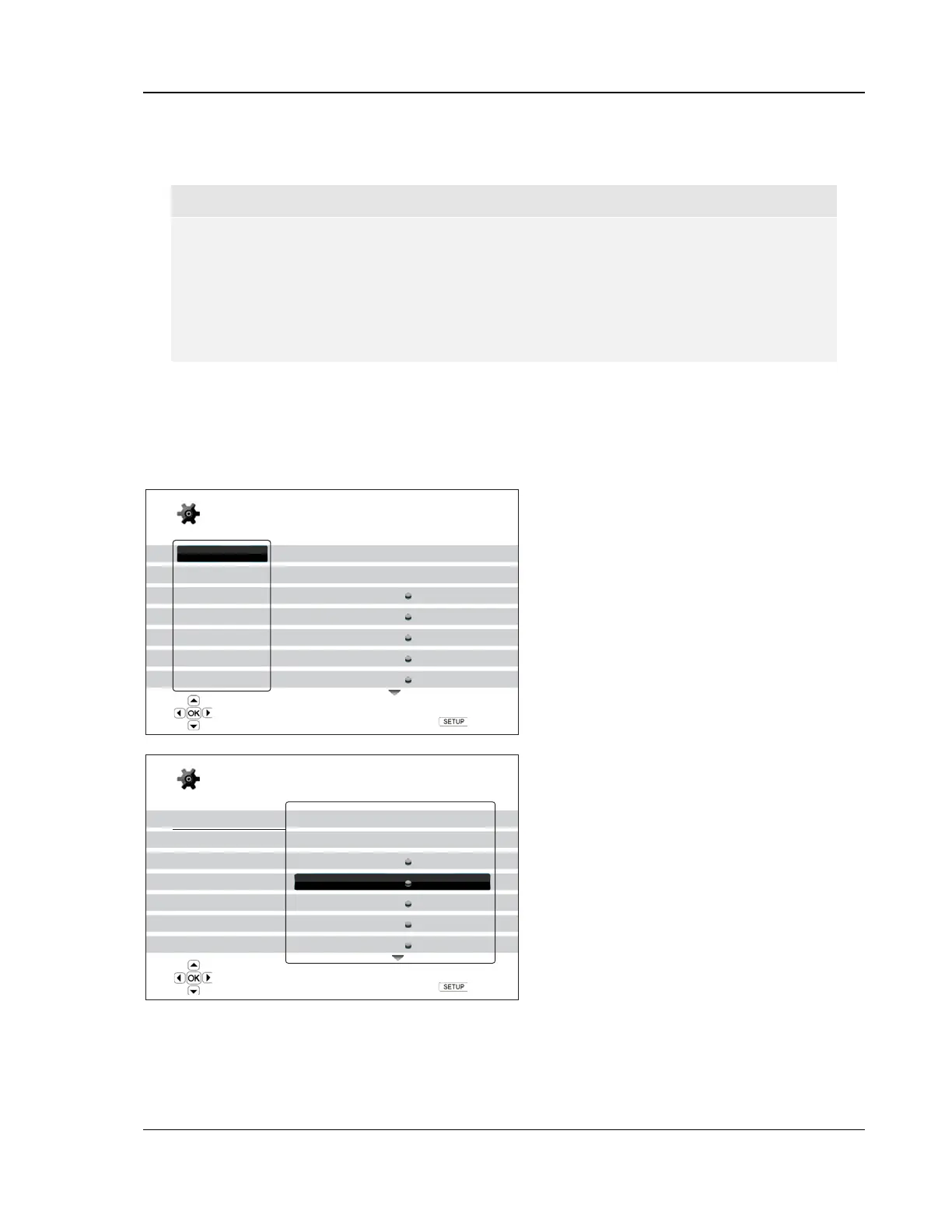 1. Press the SETUP button on the remote control, and the TV screen displays the following: