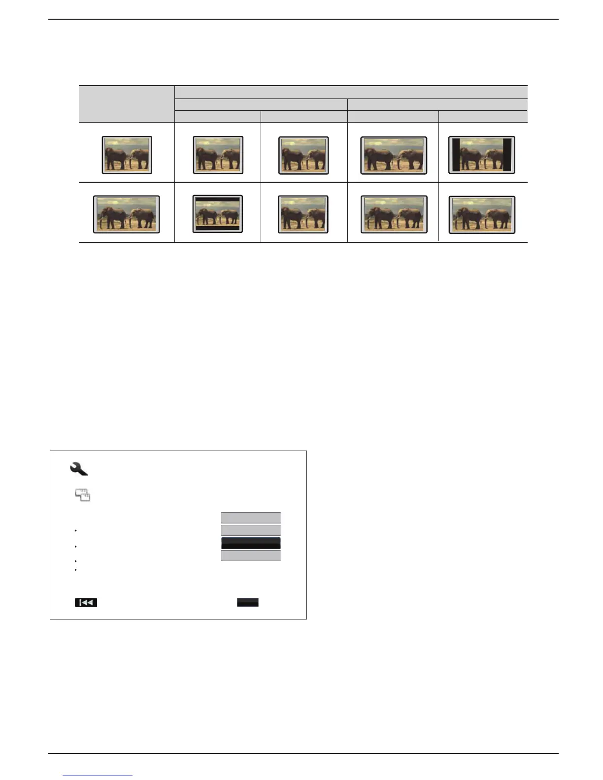 3 TV Pan and Scan. Choose when the display is 4:3. Both sides of a