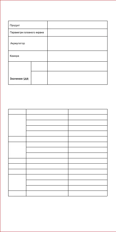 Примітка. Наведені вище значення SAR - це найвищі значення, повідомлені