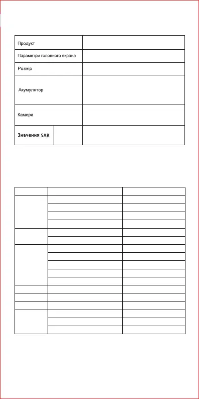 Примітка. Наведені вище значення SAR - це найвищі значення, повідомлені