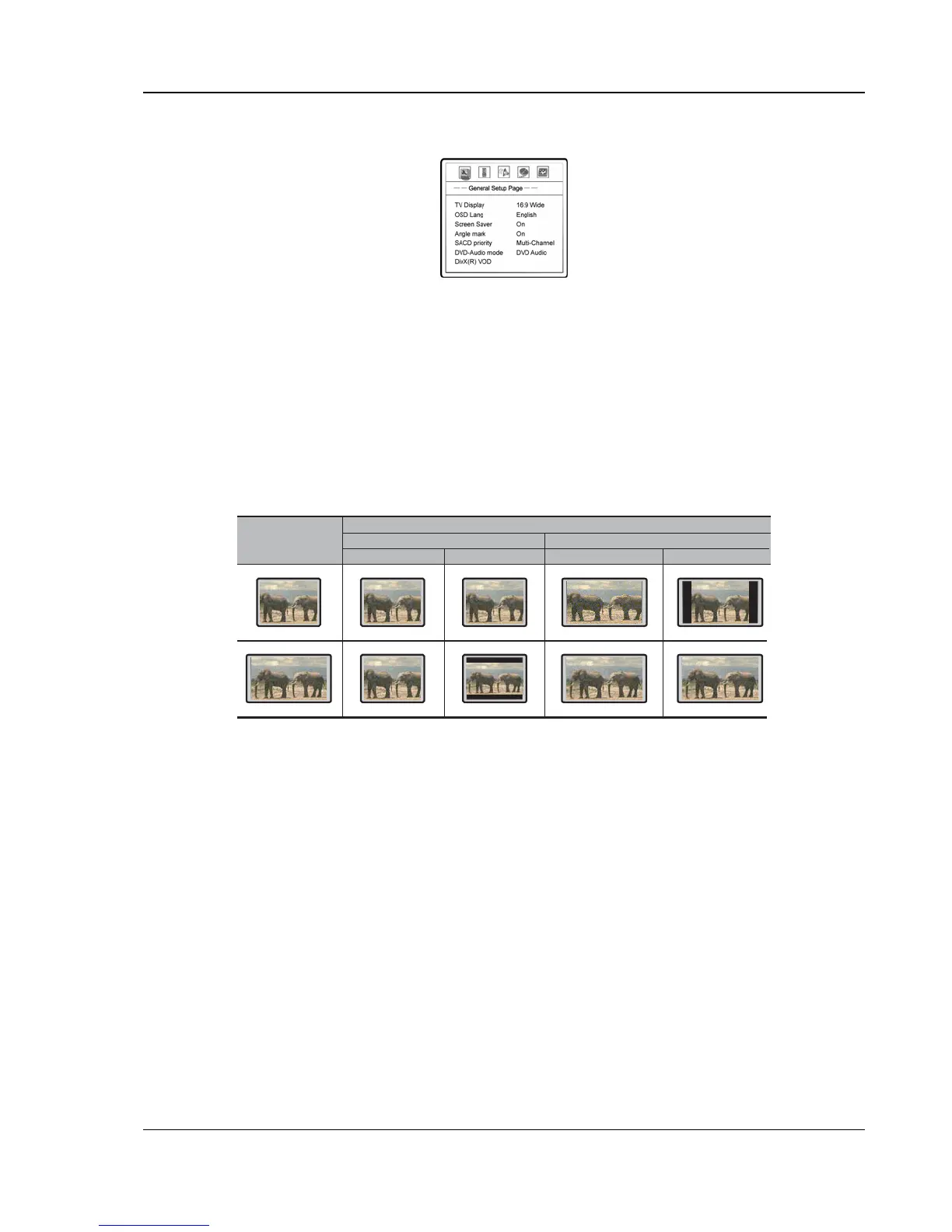 • 4:3 Letterbox – 4:3 TV Letterbox. Choose when the display is 4:3. Widescreen image is