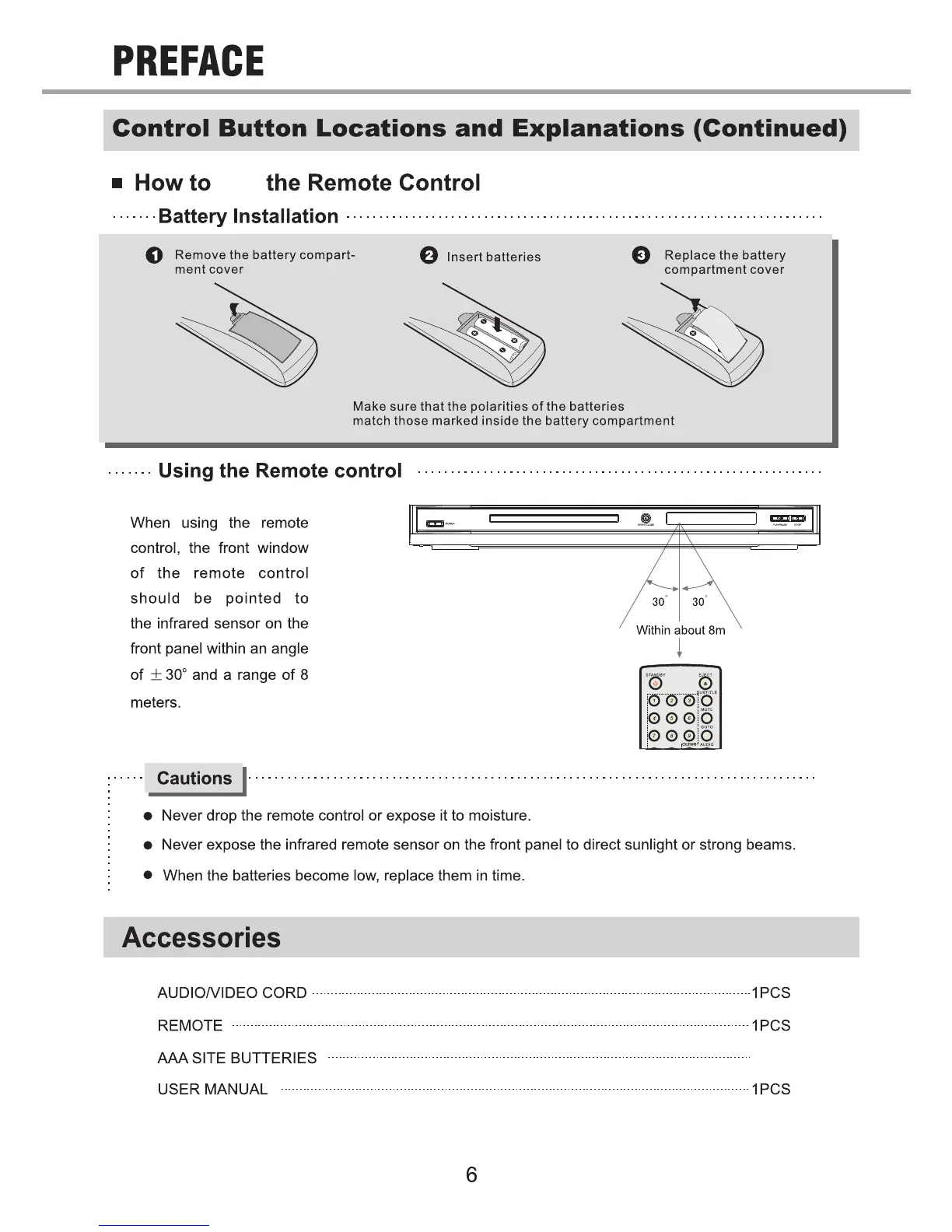 Oppo OPDV971H - Preface - Remote Control Usage; How to Use the Remote Control; Remote Control Cautions; Accessories Included