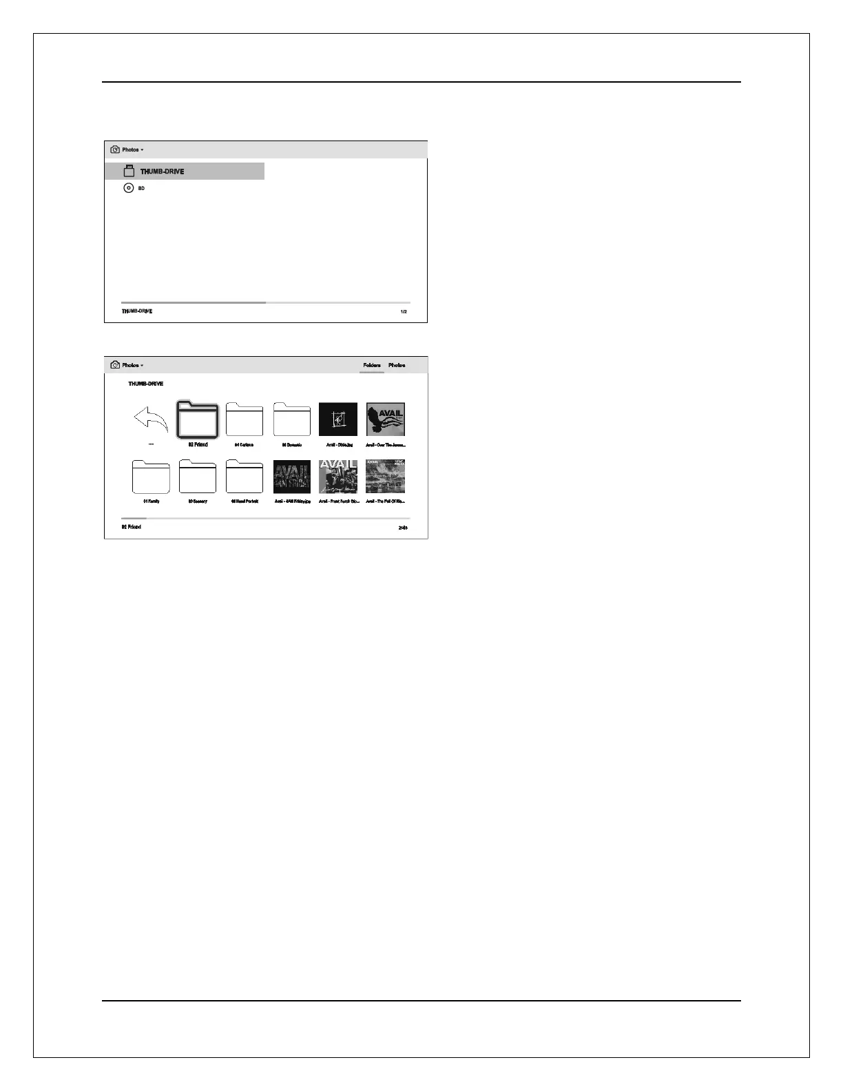 When a photo file is highlighted by the cursor, press the ENTER or PLAY button to play