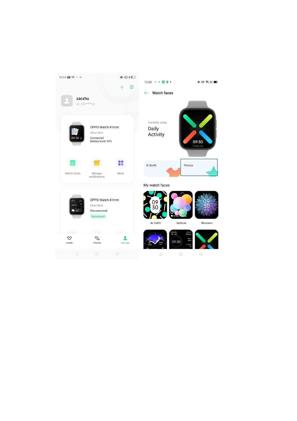 In the HeyTap Health app, go to Manage tab. Tap Watch faces. Tap Photos.
