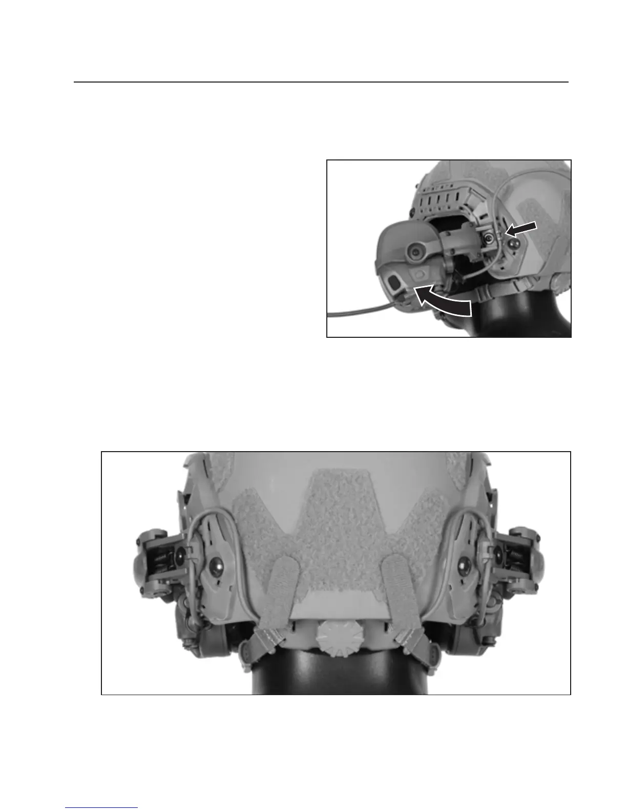 4. Attach cable to helmet as shown using supplied hook and loop fasteners