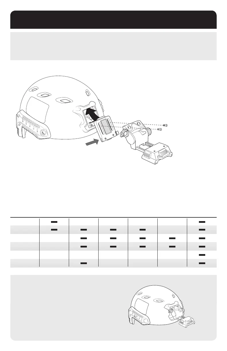 The Ops-Core Molded-In Front Mount is compatible with the following combinations of night vision goggle and