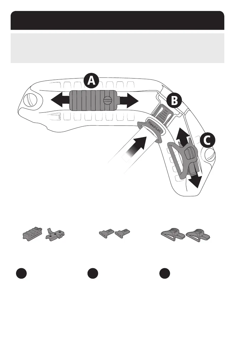 Strap Kit (B), and 36mm Goggle Swivel Clip Kit (C).
