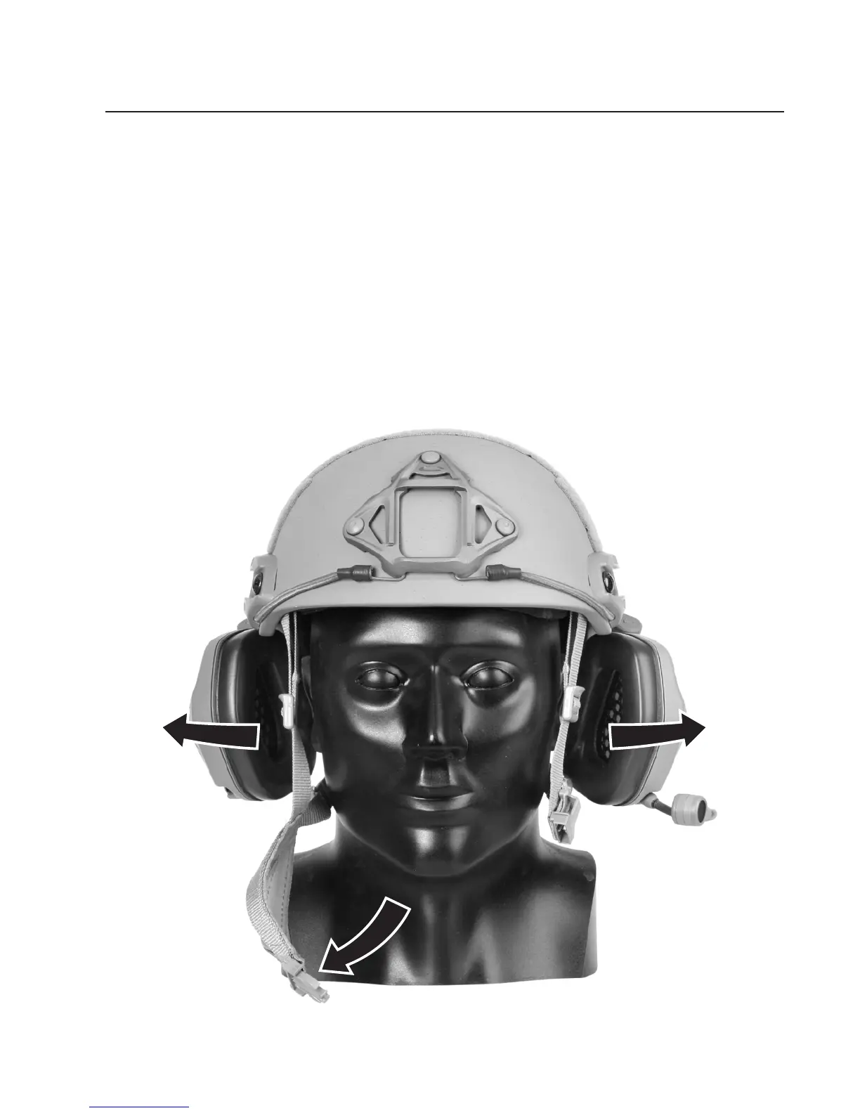 To doff the helmet, pull the earcups away from the ears to the second click. Unfasten the