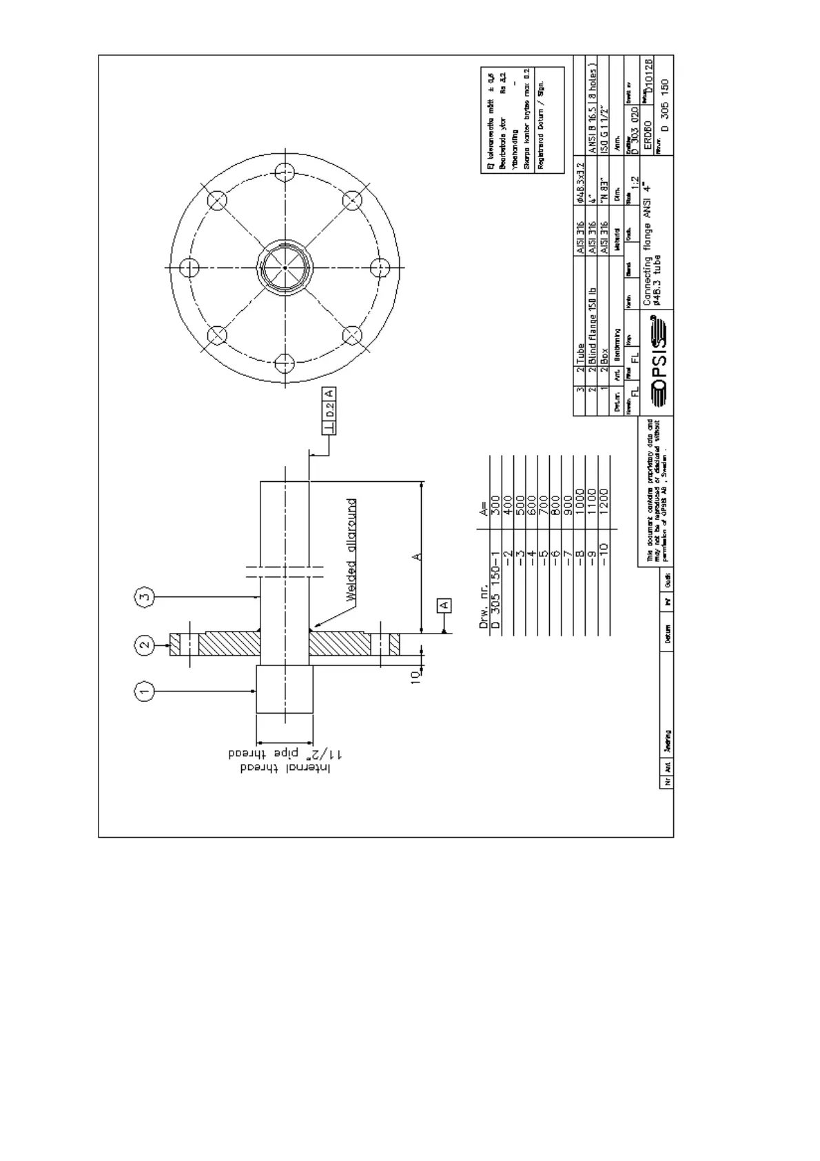 Drawing no. 1. Connecting flange