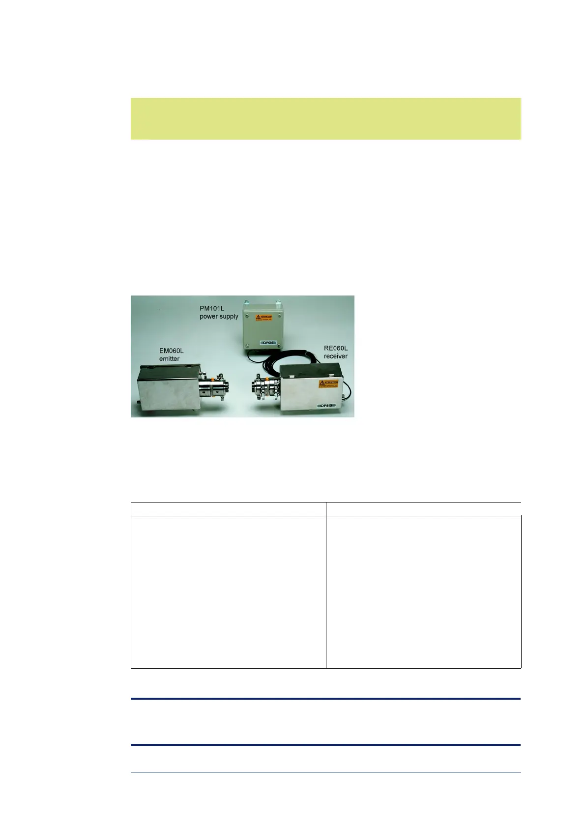 The ER060L system consists of an emitter EM060L and a receiver RE060L. A power sup-