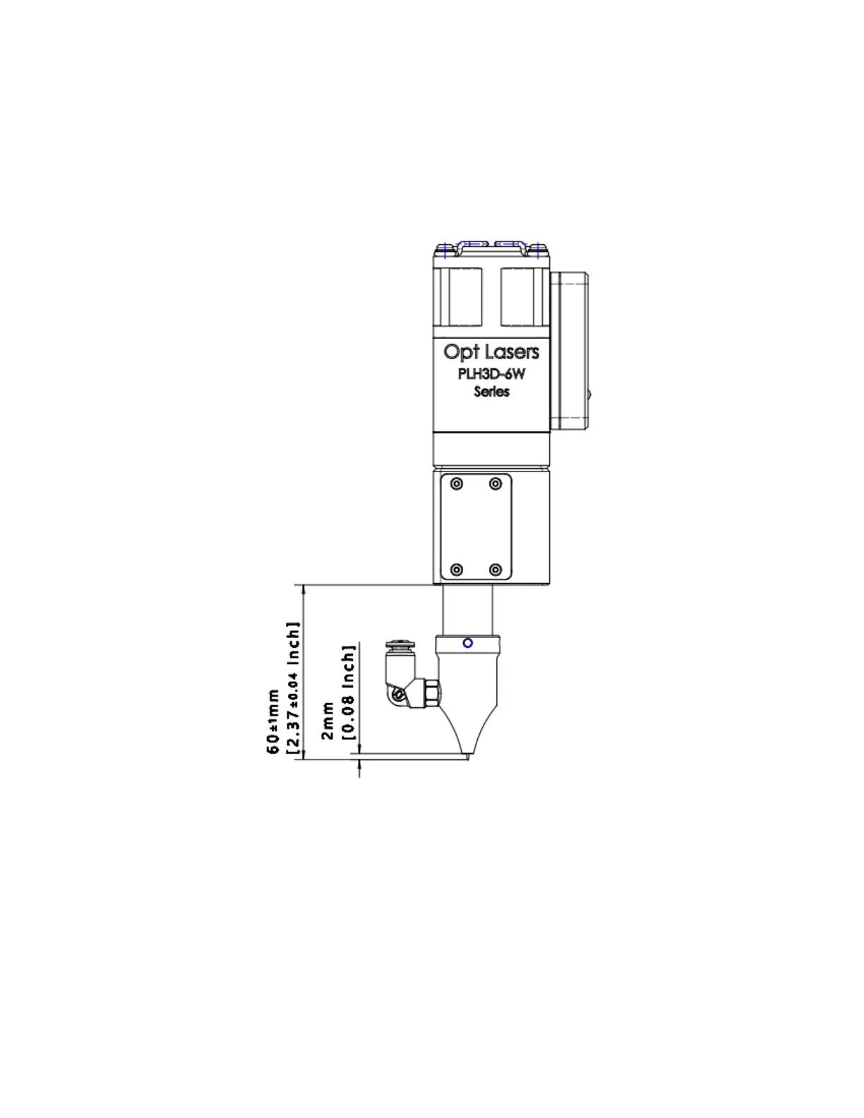 head. As a result, the tip of the nozzle is 2 mm above the material being laser cut or