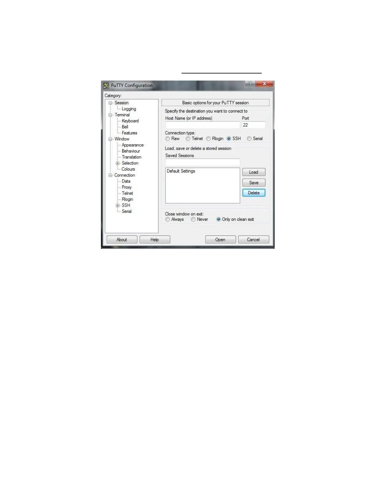 1. Download and open PuTTY. (Visit https://www.putty.org/ for details)