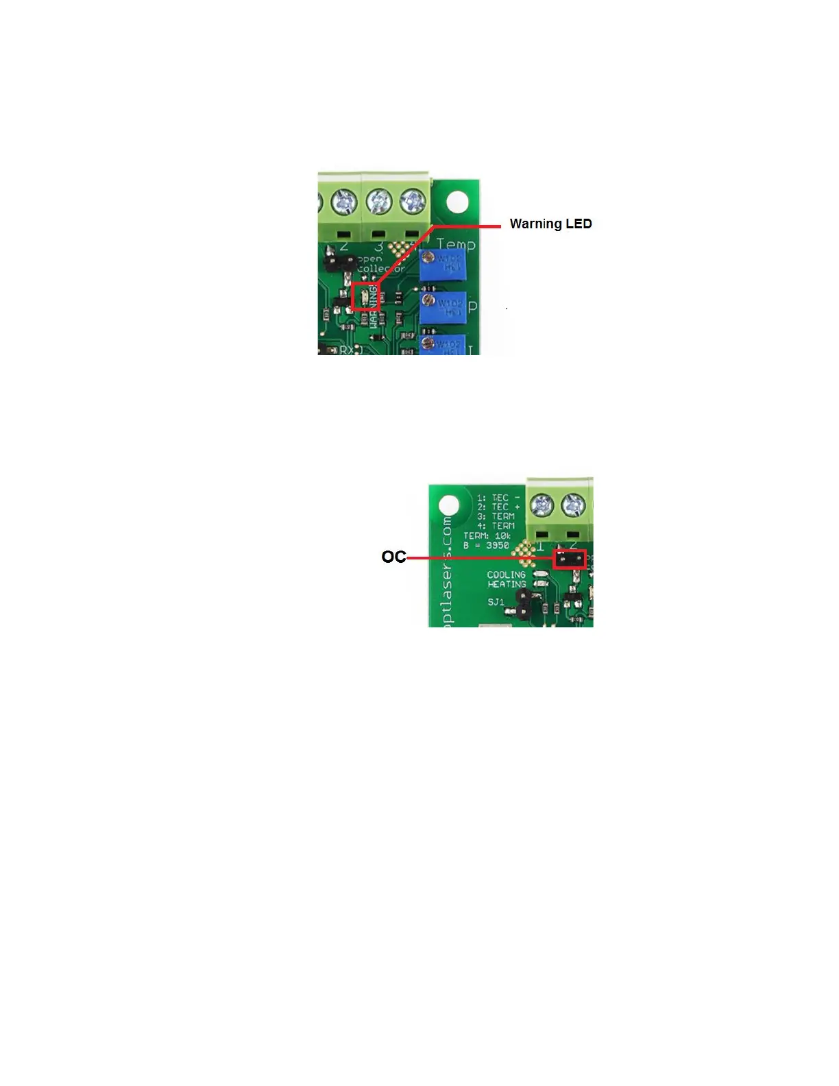 7. Open collector (OC) is grounded, Warning LED is ON and Peltier current is