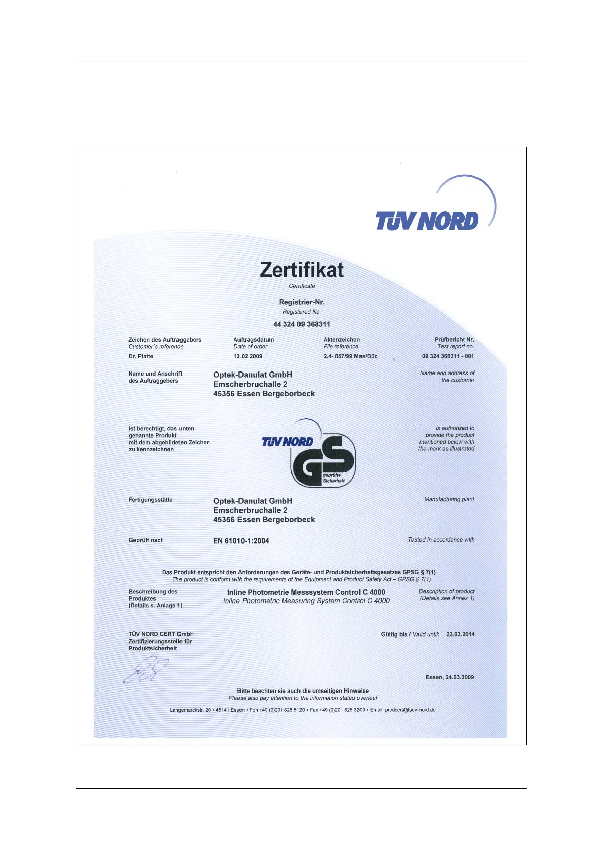 Optek AS56 - TÜV NORD CERT Gmbh GS-Mark