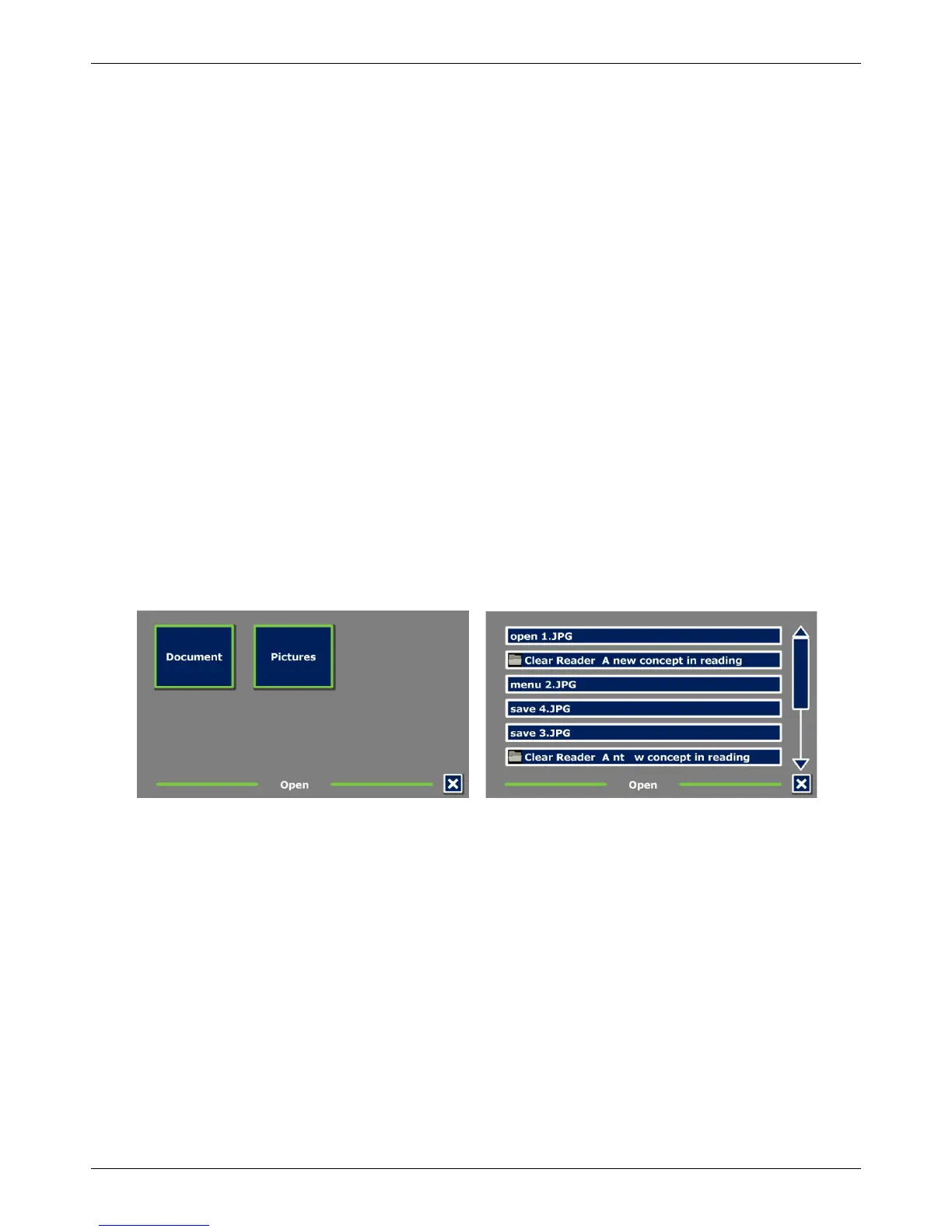 menu will be closed and the document or picture will be opened. Pictures can be magnified. It is