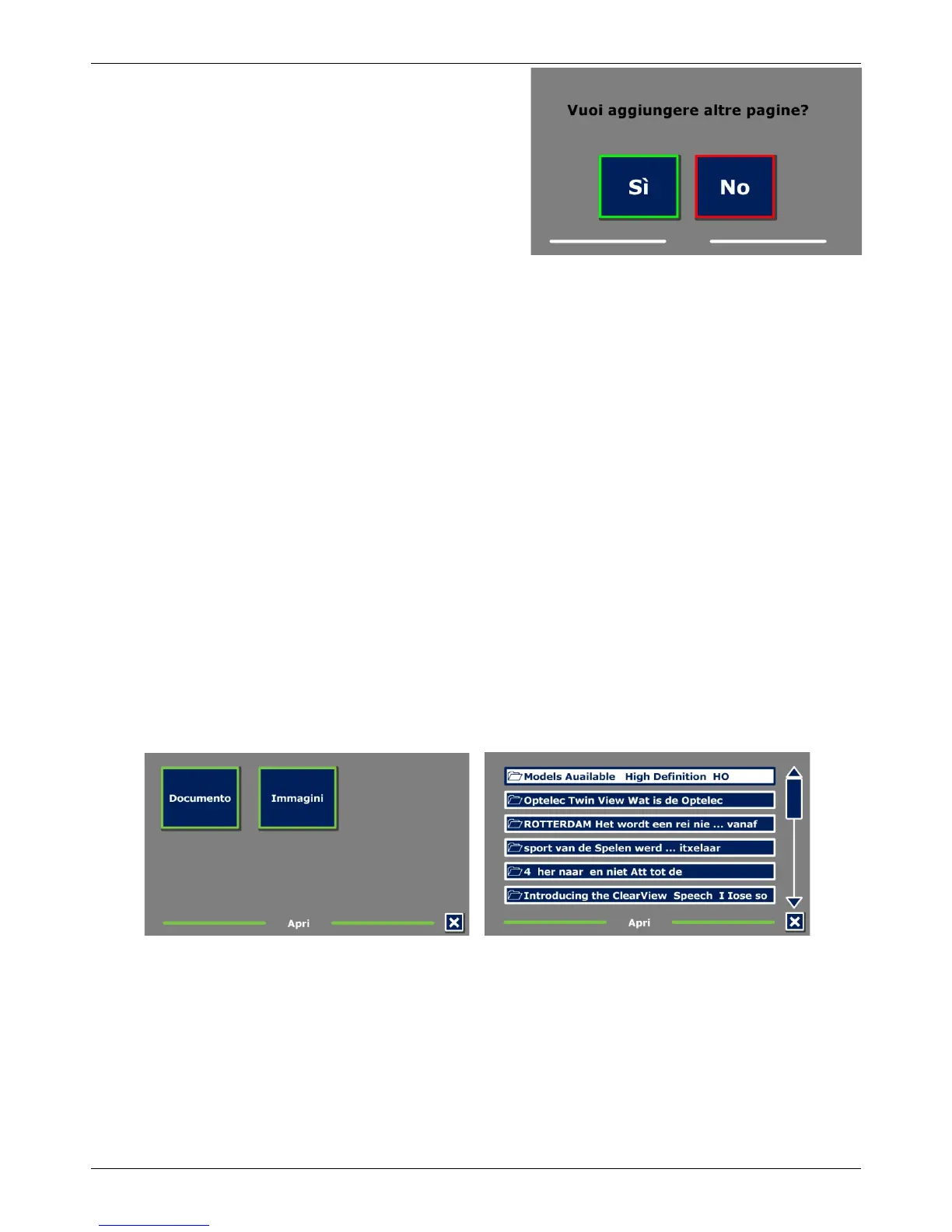Scorrere l’elenco dei documenti e delle immagini usando la barra di scorrimento sulla parte destra.