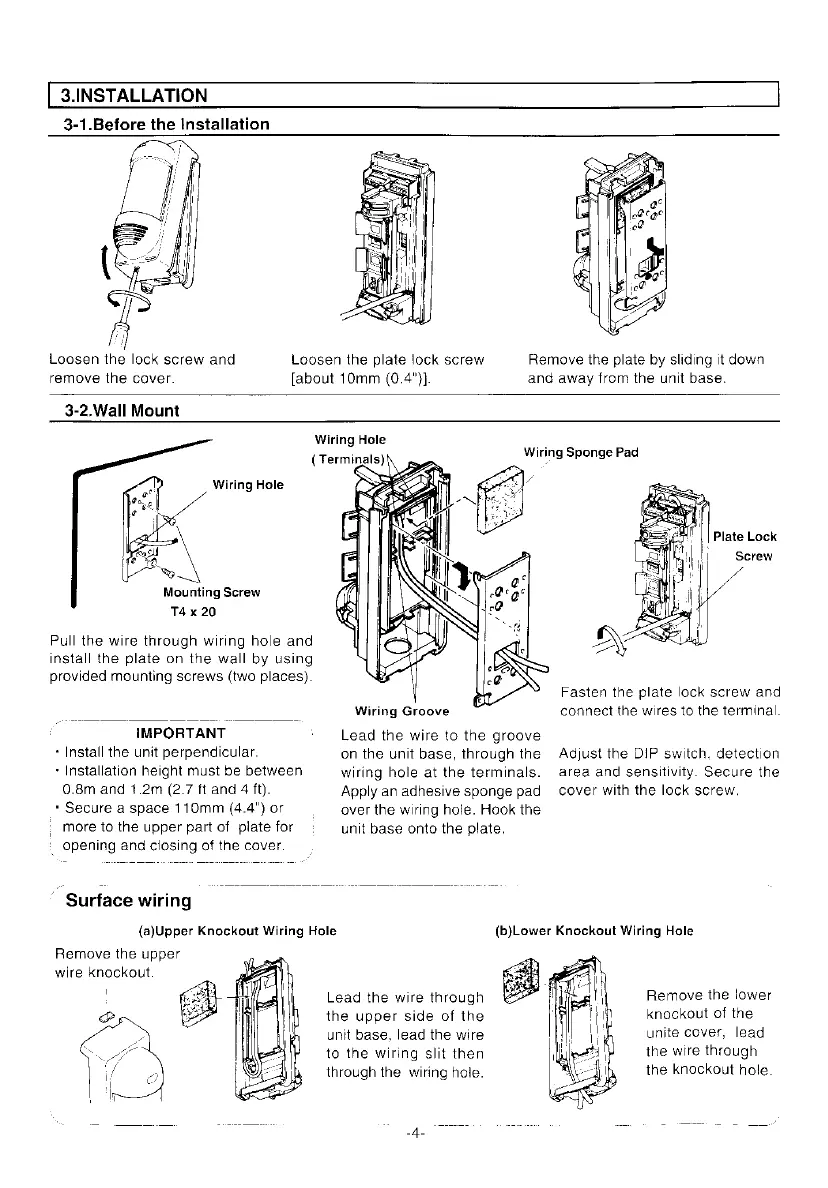 Optex VX-402 - Installation Guide; Pre-Installation Steps; Wall Mounting Procedures