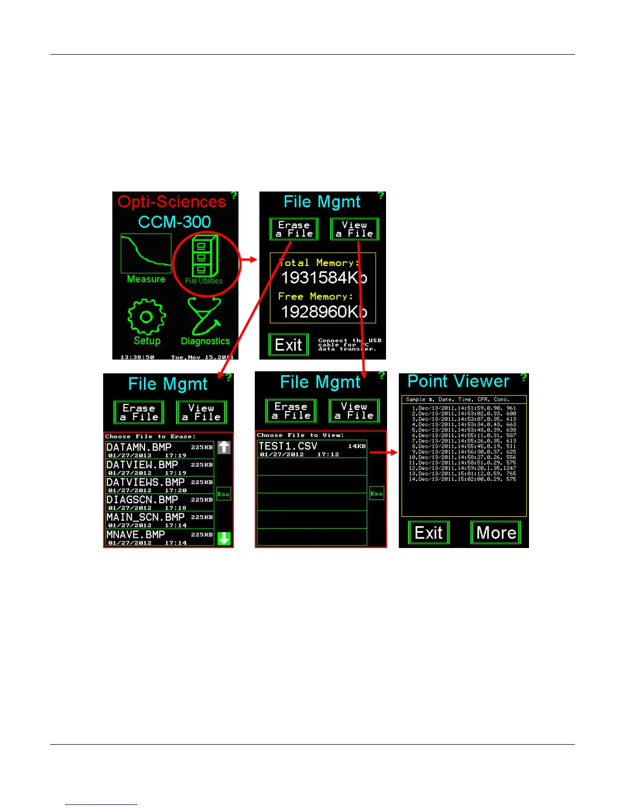 Data saved on the unit may be erased or viewed from this menu. Data may be moved between the unit and