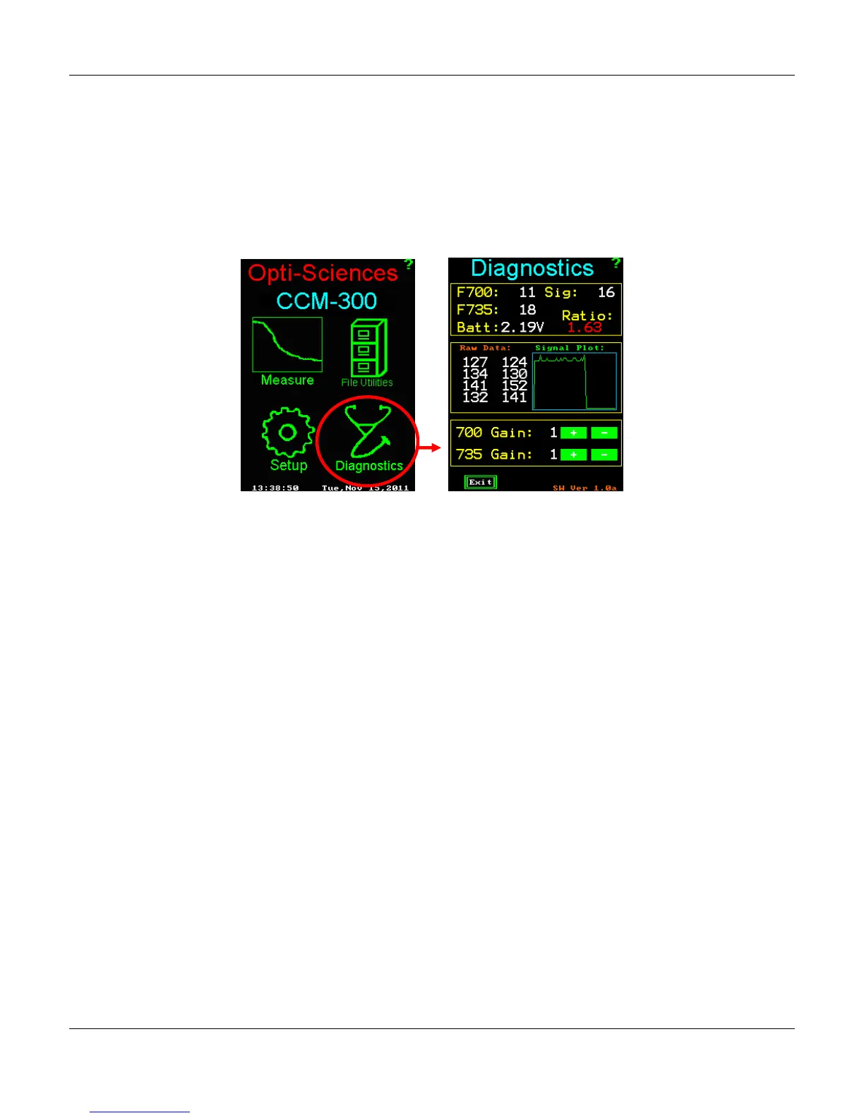 The top box shows current system values. The Signal reading is a measure of the fluorescence intensity