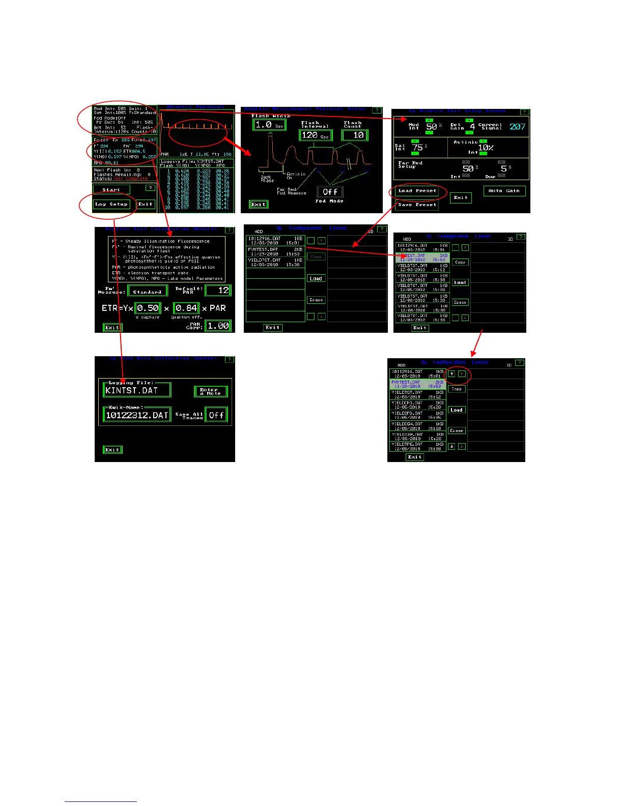 Set up screen #3 Stored test preset file screen Preset values are selected by touch