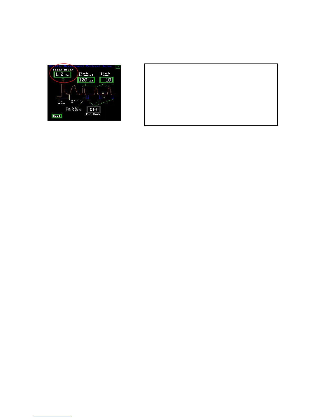 The saturation “Flash Width” may be set from 0.1 seconds