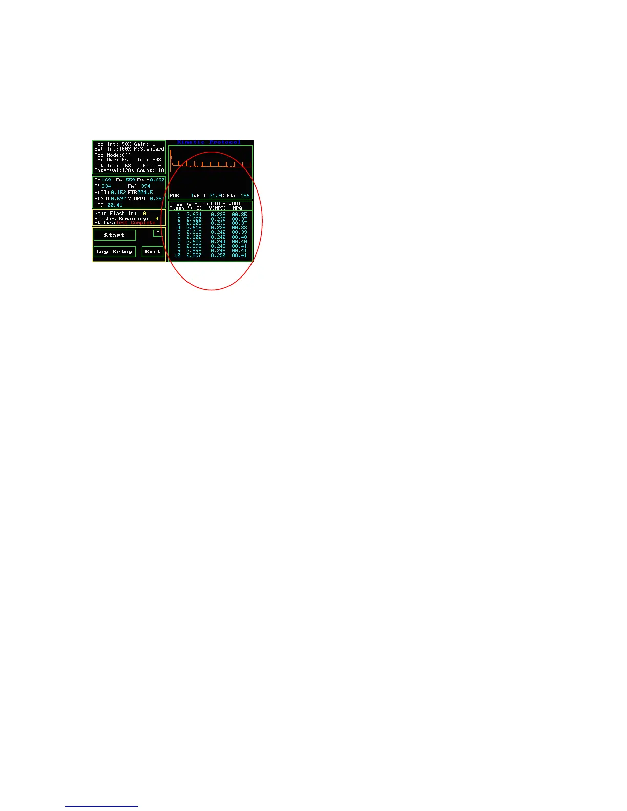 On the main quenching measuring screen, the lower right hand side window logs all of
