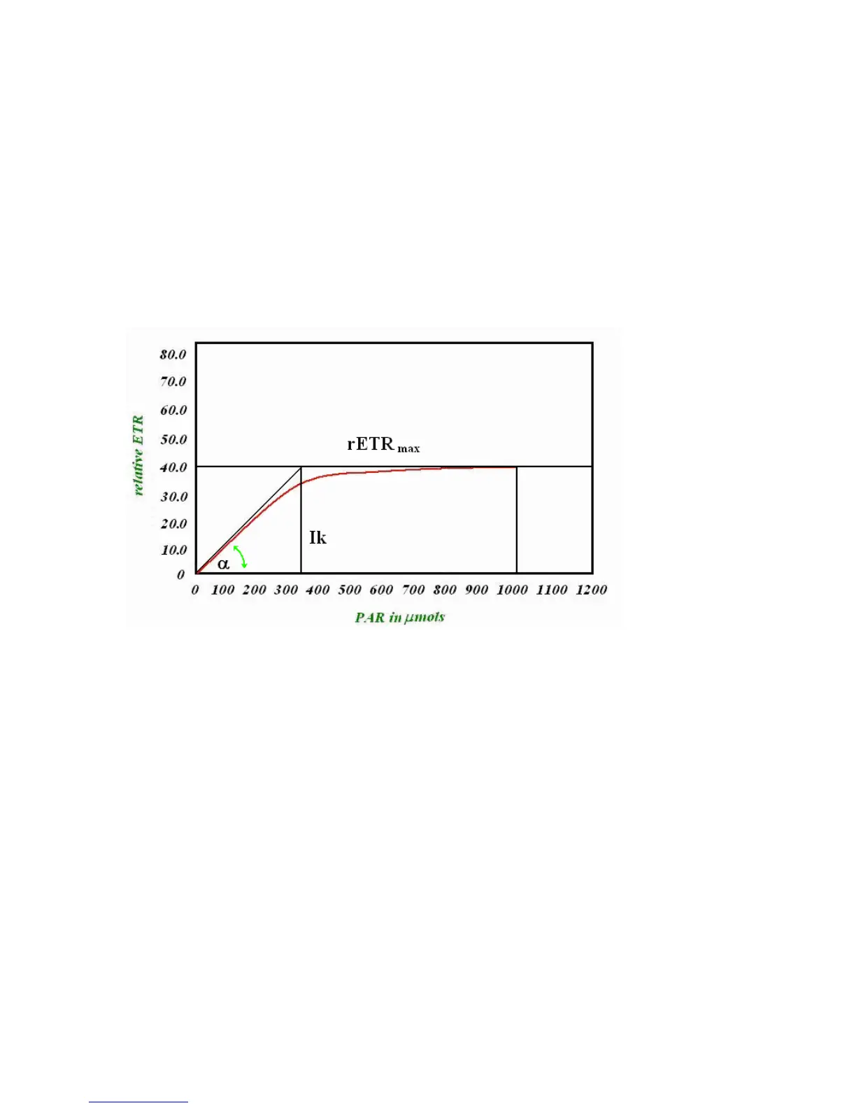 Ik = α/ETRmax is a measurement of the point where light saturation dominates, or the