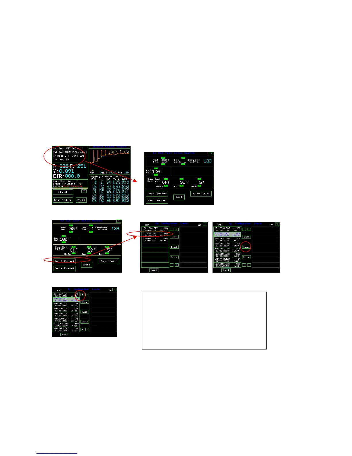 RLC Test Setup Screen Configuration Loader Screens