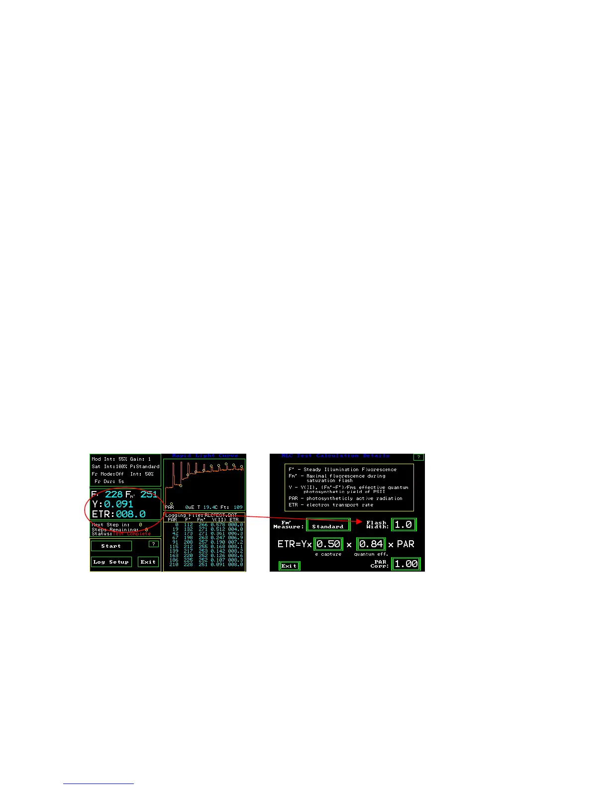 RLC Measuring Screen ETR Test Calculation Screen