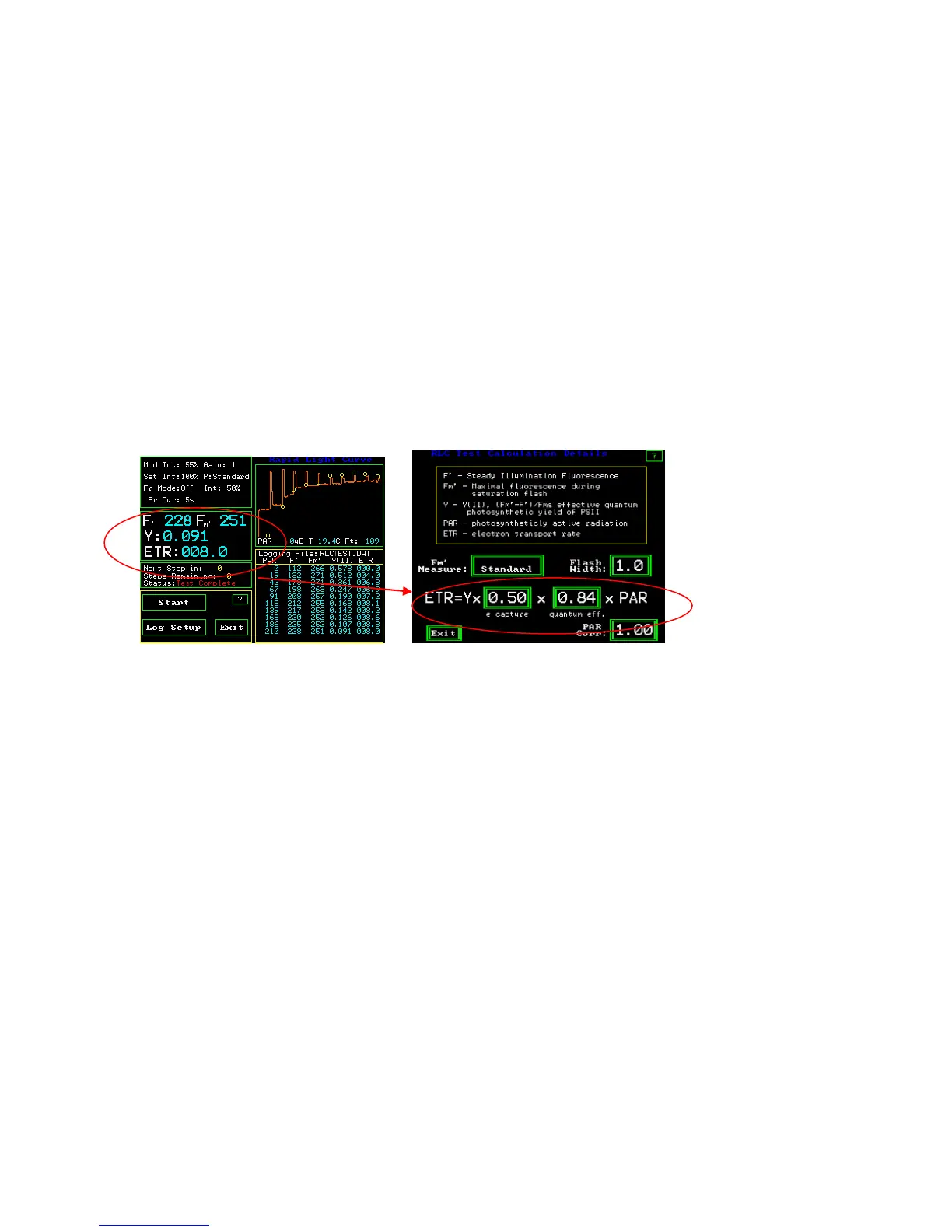 RLC Measuring Screen RLC ETR Calculation Details Screen