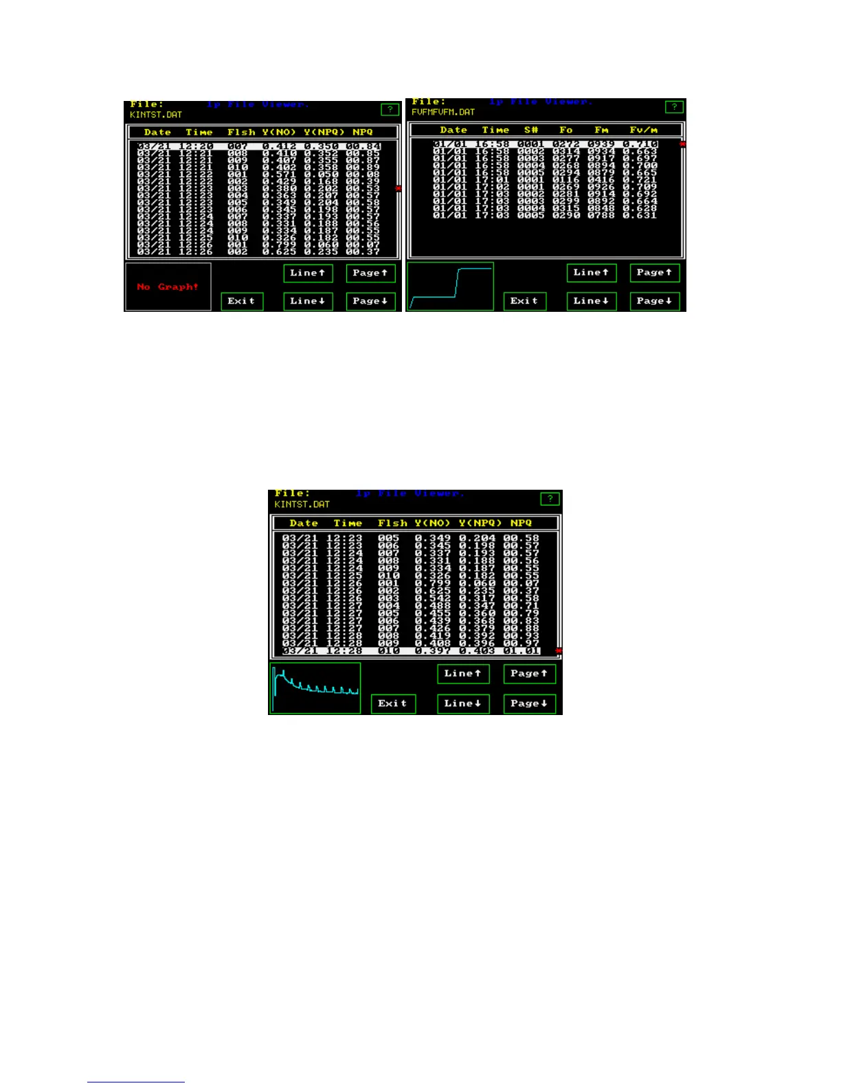 To display quenching graphs, use the “Page” arrow buttons, and the “Line” arrow buttons