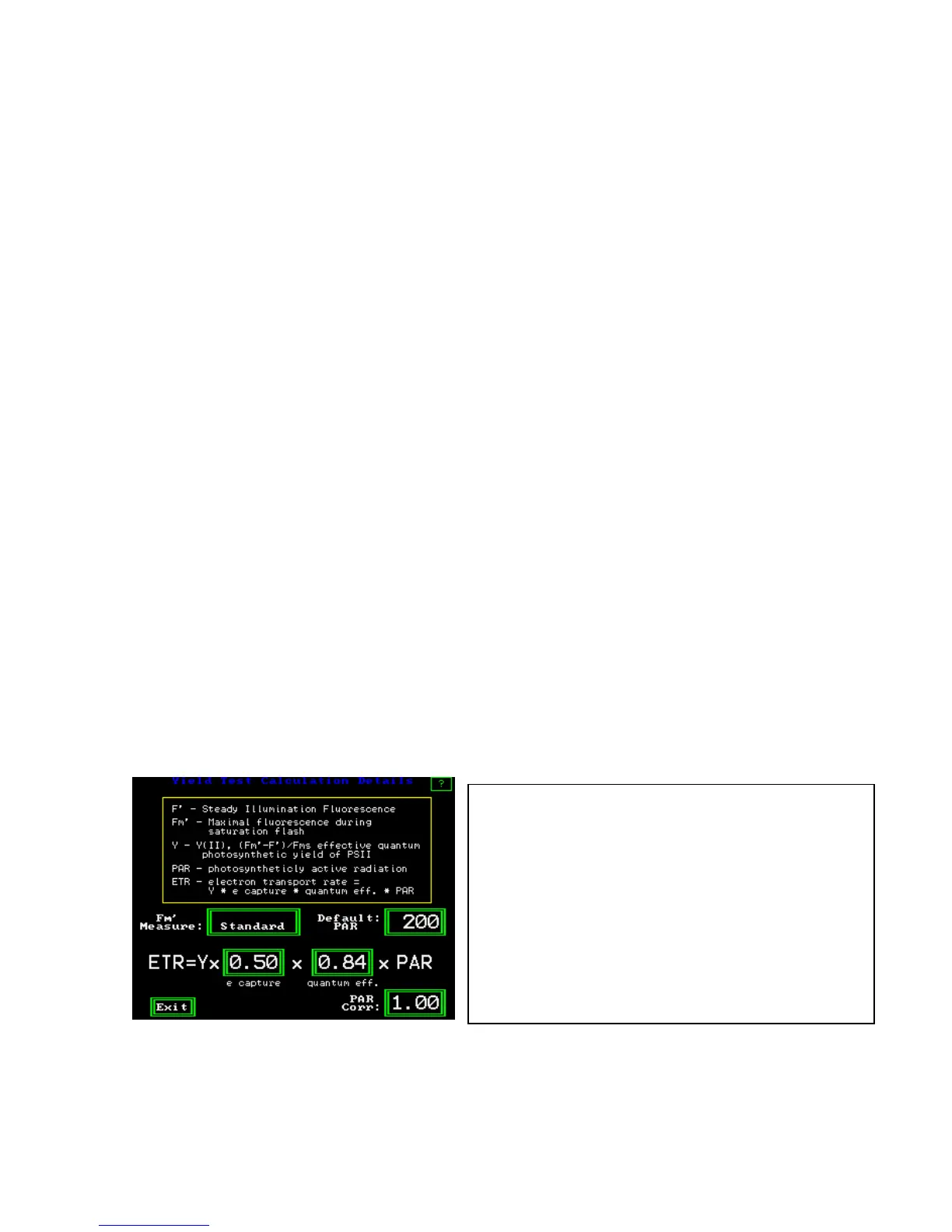 This screen can be reached by touching the box with ETR in it on the Y(II) measuring