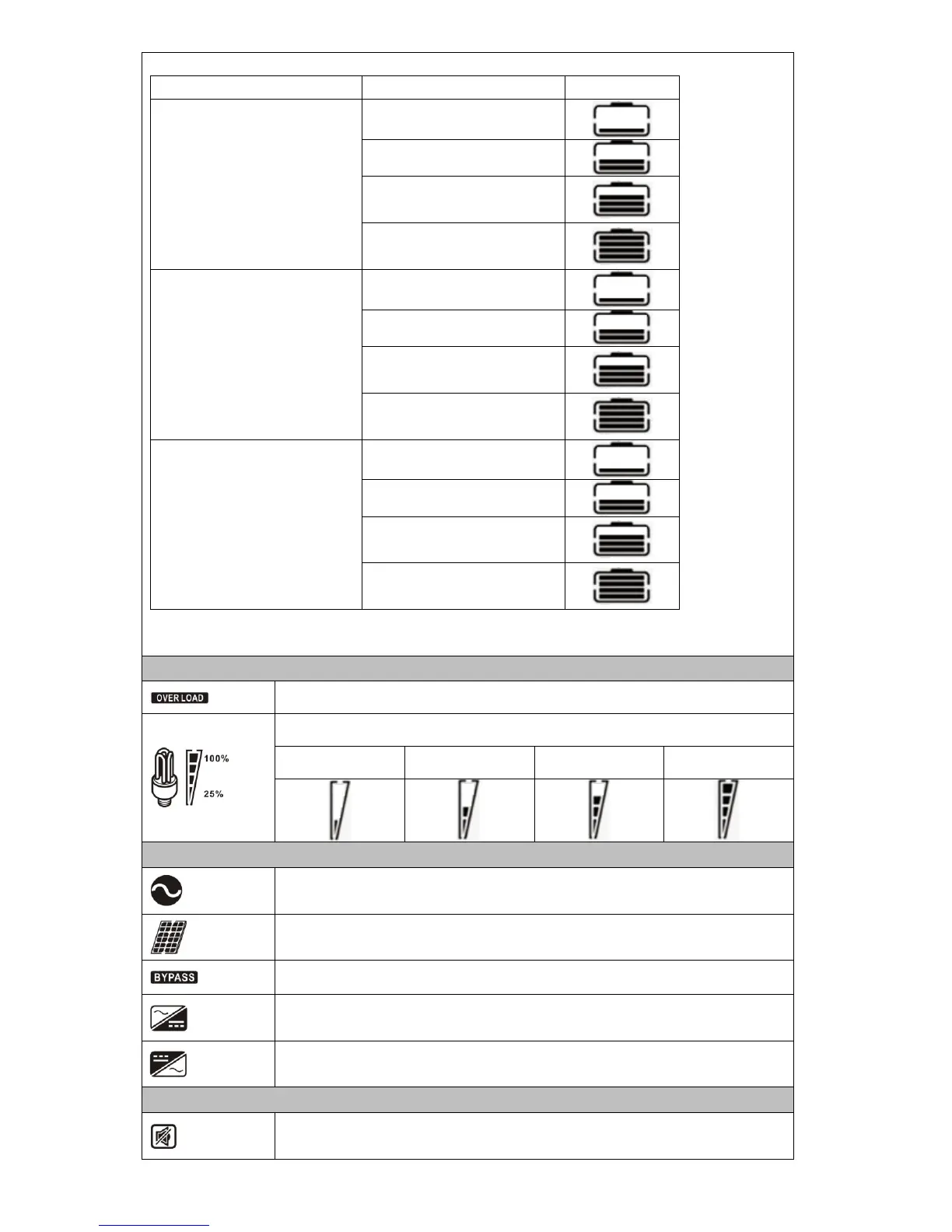 Indicates the load level by 0-24%, 25-50%, 50-74% and 75-100%.