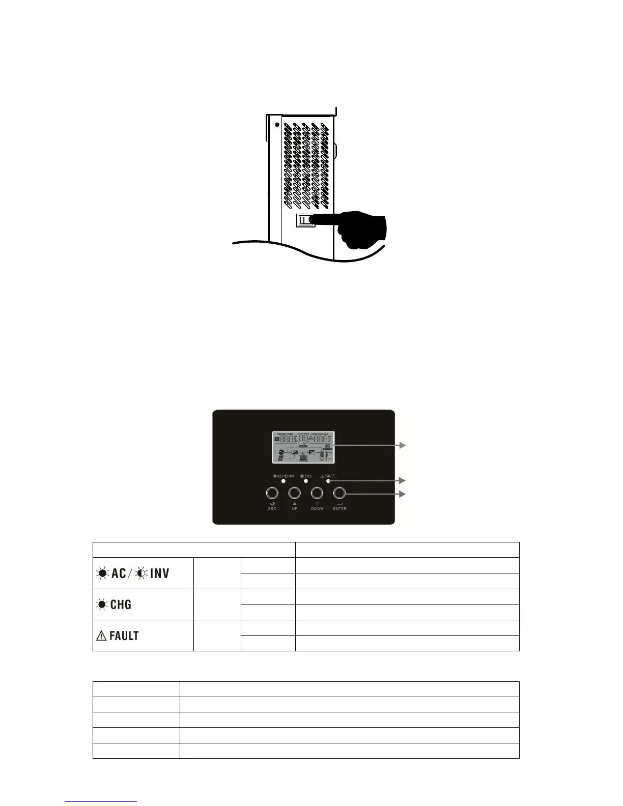 The operation and display panel, shown in below chart, is on the front panel of the inverter. It includes