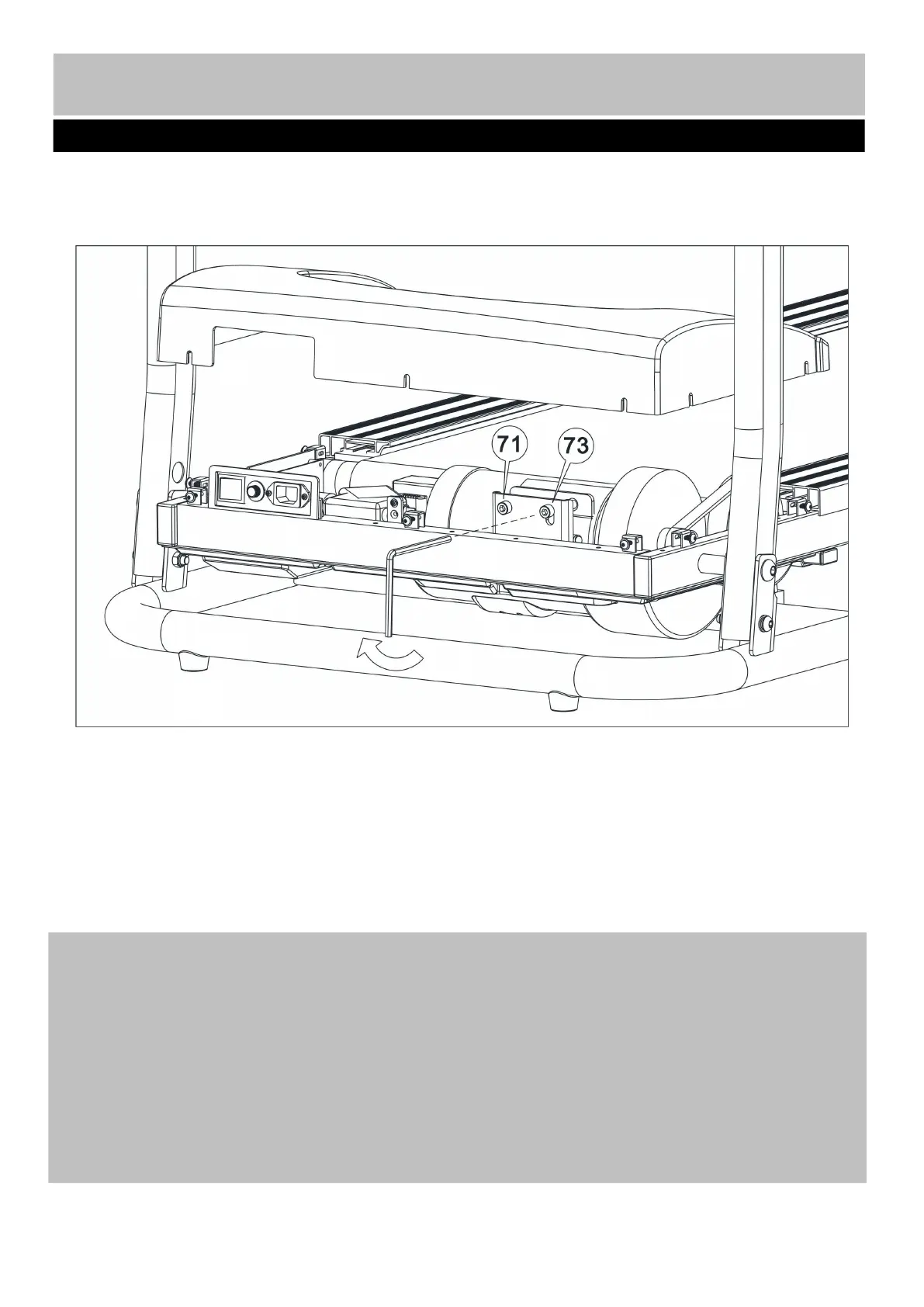 3. After the adjustment, tighten the no. 71 bolt to ensure that the motor and drum are parallel.